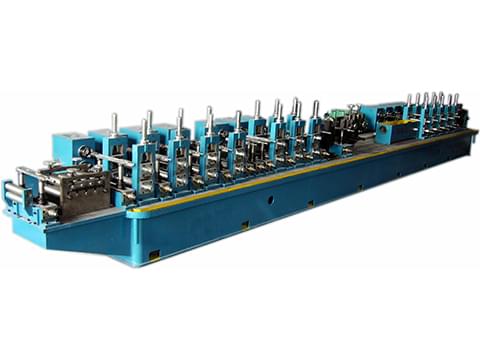 高頻焊管機(jī)是以帶鋼為原料,經(jīng)開卷、成型、高頻焊接、解決焊瘤、定徑、校直、切斷等一系列制管工序制造出圓鋼管或各樣式一行鋼管的成套設(shè)備。采用輥式成型將帶鋼冷彎加工成圓坯,通過高頻感應(yīng)加熱將焊縫擠壓形成圓管,在經(jīng)過定徑加工生產(chǎn)出各樣式標(biāo)準(zhǔn)規(guī)格的圓管、方矩形管。
